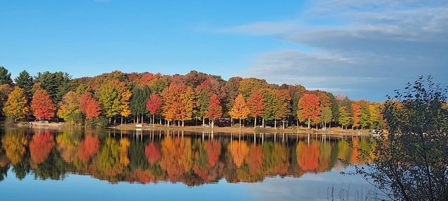 (10/15/2025) The colors should be reaching their peak within a week. Kurt Hagemeister took this picture from his place while looking across the lake this morning.